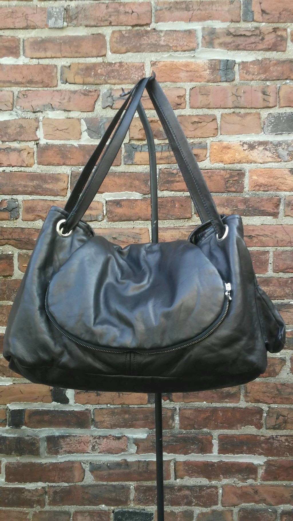 You can wear this Butter-soft Bag on-the-shoulder or messenger-style. It is uniquely designed with a zippable flap, hence, Mudflap, and is made of the best quality Nappa Lambskin. It has an outside zippered pocket for your cell phone (or whatever) and an double inside pocket, for your Keys and Lip Gloss (or whatever, lol). Enjoy!